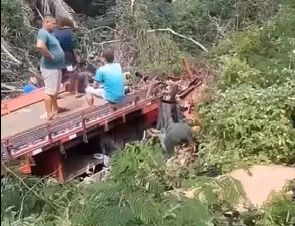 CAMINHÃO DESPENCA EM RIBANCEIRA E MATA EX-JOGADOR E MOTORISTA EM DOM EXPEDITO LOPES