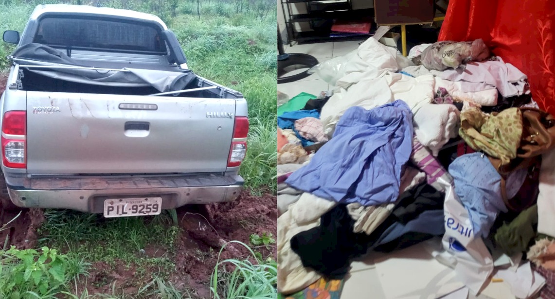 Entre os itens levados estão dois veículos — uma Toyota Hilux e um Renault Duster — além de aproximadamente R$ 13,3 mil em dinheiro, três televisores, seis aparelhos celulares, joias, alianças, um revólver calibre 32, espingardas de pressão, utensílios domésticos, alimentos, bebidas, roupas, perfumes e ferramentas.