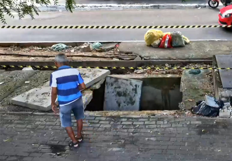 Cratera se abre em avenida e derruba homem e crianças no Promorar