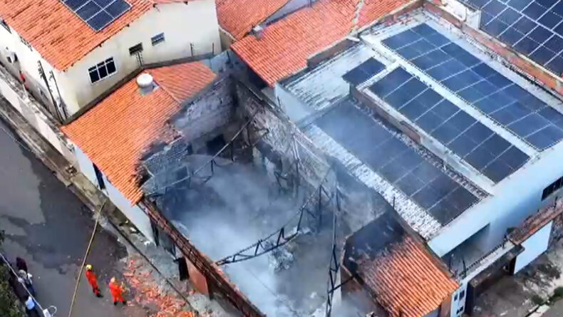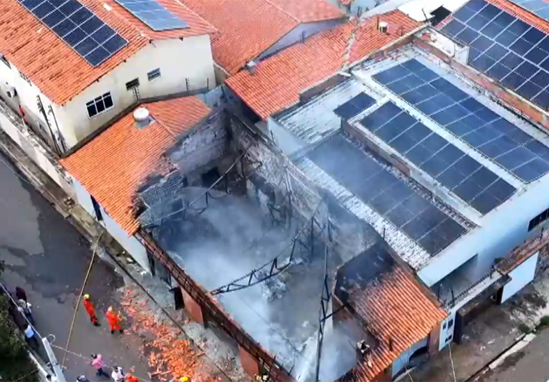 Um incêndio de grandes proporções atingiu um imóvel utilizado como depósito na manhã desta sexta-feira (6) no bairro Saci, localizado na zona Sul de Teresina. A estrutura foi completamente destruída pelas chamas e três casas próximas também sofreram danos. Apesar do susto, não houve registro de pessoas feridas.