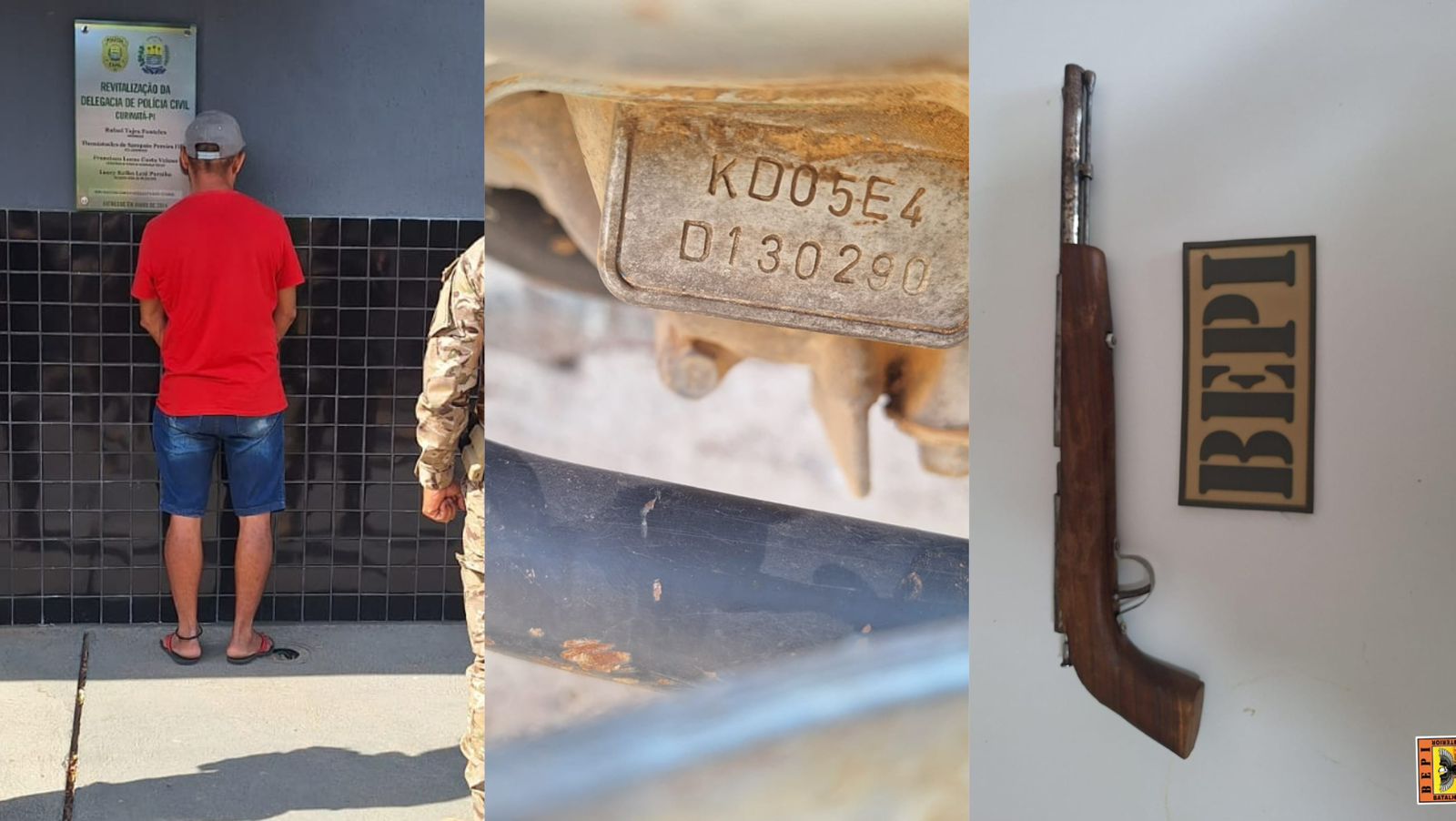 O homem foi encontrado com uma arma de fogo de fabricação artesanal e uma motocicleta com sinais de adulteração. Durante a ação, realizada pela 4ª Companhia do BEPI, com apoio das 4ª e 2ª Companhias do 7º BPM e da Polícia Civil, outras duas motocicletas com indícios de adulteração também foram apreendidas em diferentes endereços do município.