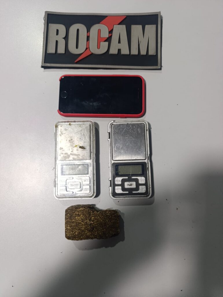Durante a tentativa de fuga, o suspeito — identificado pelas iniciais C.D.A.M. — foi contido pelos militares ao tentar pular o muro de um terreno público. Ao verificar o conteúdo da sacola, os policiais encontraram 48 gramas de substância análoga à maconha, duas balanças de precisão e um smartphone iPhone 7.