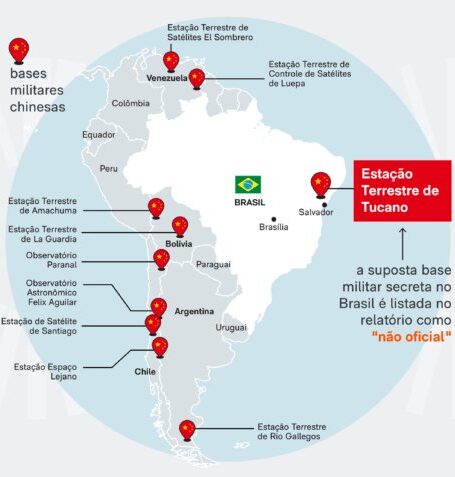 De acordo com o relatório, a estrutura mencionada seria denominada “Estação Terrestre de Tucano” e estaria localizada na capital baiana, vinculada à empresa brasileira do setor aeroespacial Ayla Space, que mantém parceria com a companhia chinesa Beijing Tianlian Space Technology. Segundo o documento, a cooperação envolve análise de dados de satélites chineses em território brasileiro.